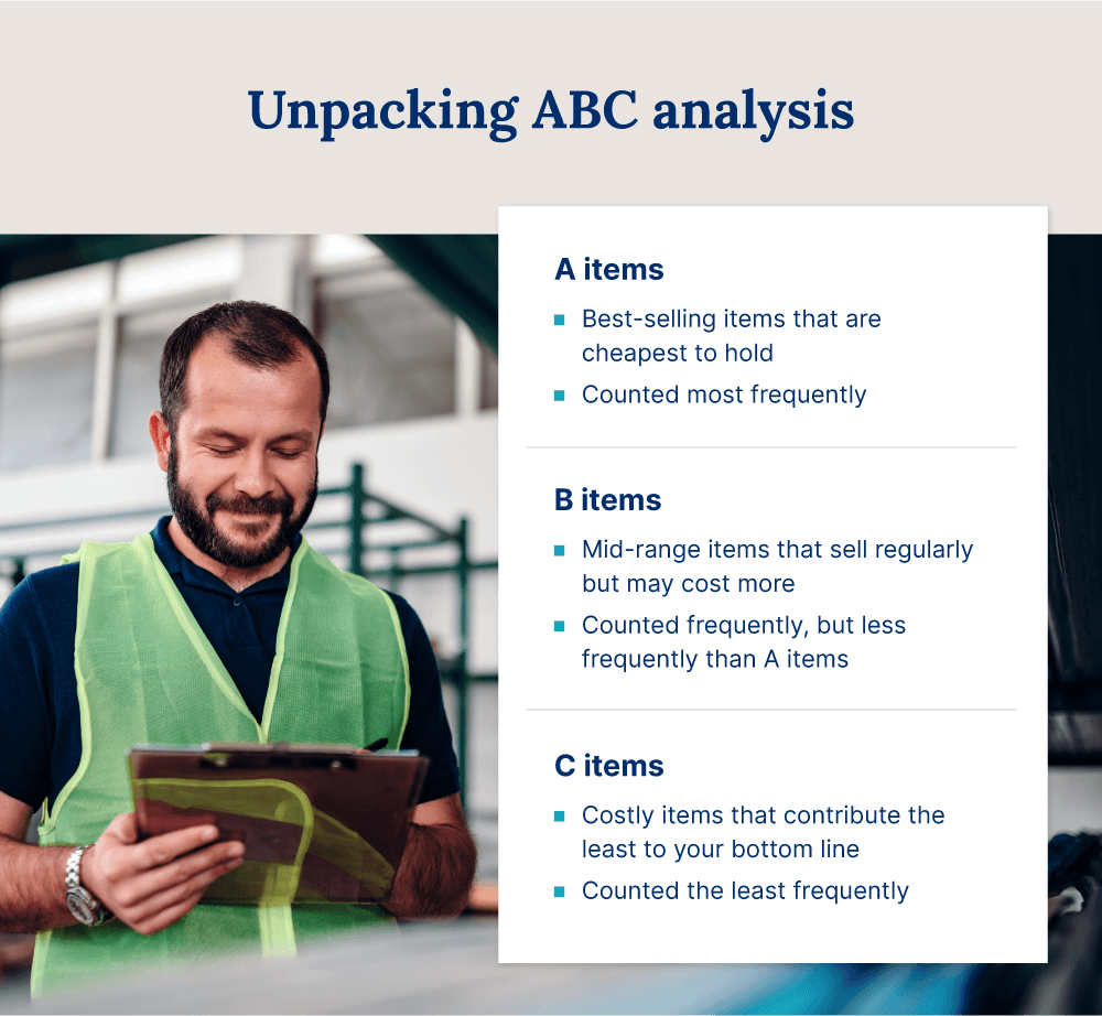 - C items: The rest of your inventory that makes up the bulk of your inventory costs while contributing the least to your bottom line