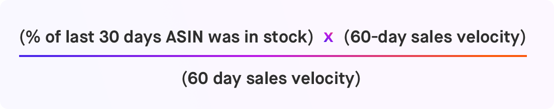 The in-stock rate is given by the percentage of your Amazon ASINs that have been in stock for the last 30 days, weighted by the number of sold SKUs in the previous 60 days. In a nutshell, it describes a seller’s ability to sell without facing stock outages. A high in-stock inventory saves you from lost sales due to product shortages.